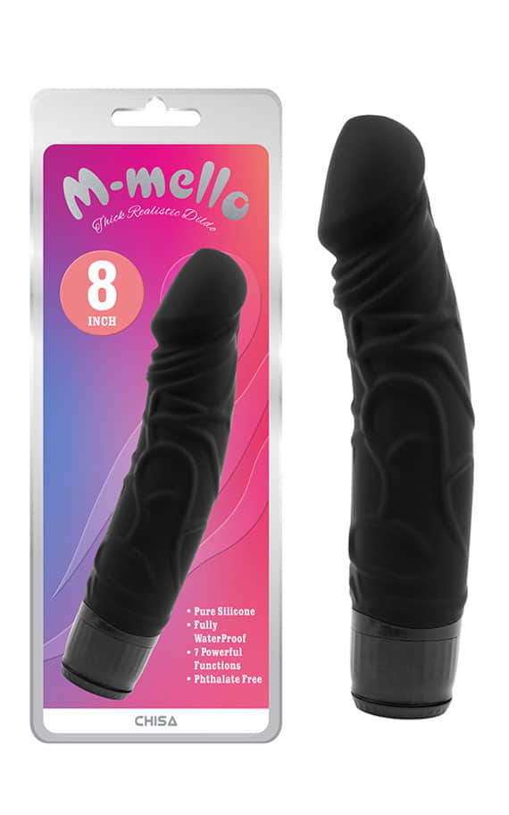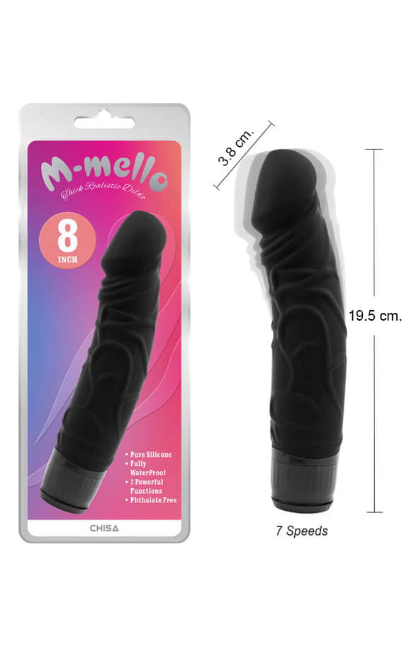 Реалистичен црн силиконски вибратор со 7 модови на вибрација 19,5 X 3.8 см (M-Mello)